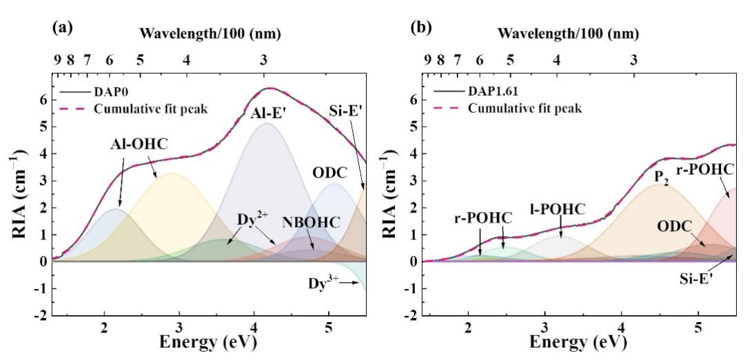 研究团队提出一种抗光子暗化型掺Dy3+石英玻璃的新方案。该方案通过提升P/Al比,从玻璃基质内部抑制了Dy离子变价以及Al-OHC等缺陷的形成,从而大幅降低了辐照引起的吸收损耗。石英玻璃中,Al是常用的稀土离子分散剂,可以提高稀土离子的分散性和溶解度。但由于Al3+在石英玻璃中的价态与基质Si不匹配,在吸收一定能量后(蓝光、紫外线辐照)很容易产生空穴中心Al-OHC等缺陷。引入P,能够与Al形成价态平衡且稳定的[PAlO4]结构基团,这抑制了Al相关缺陷的形成,从而提升了掺Dy石英玻璃的抗光暗化性能。该工作为可见光光纤激光器提供关键材料和方法支撑。