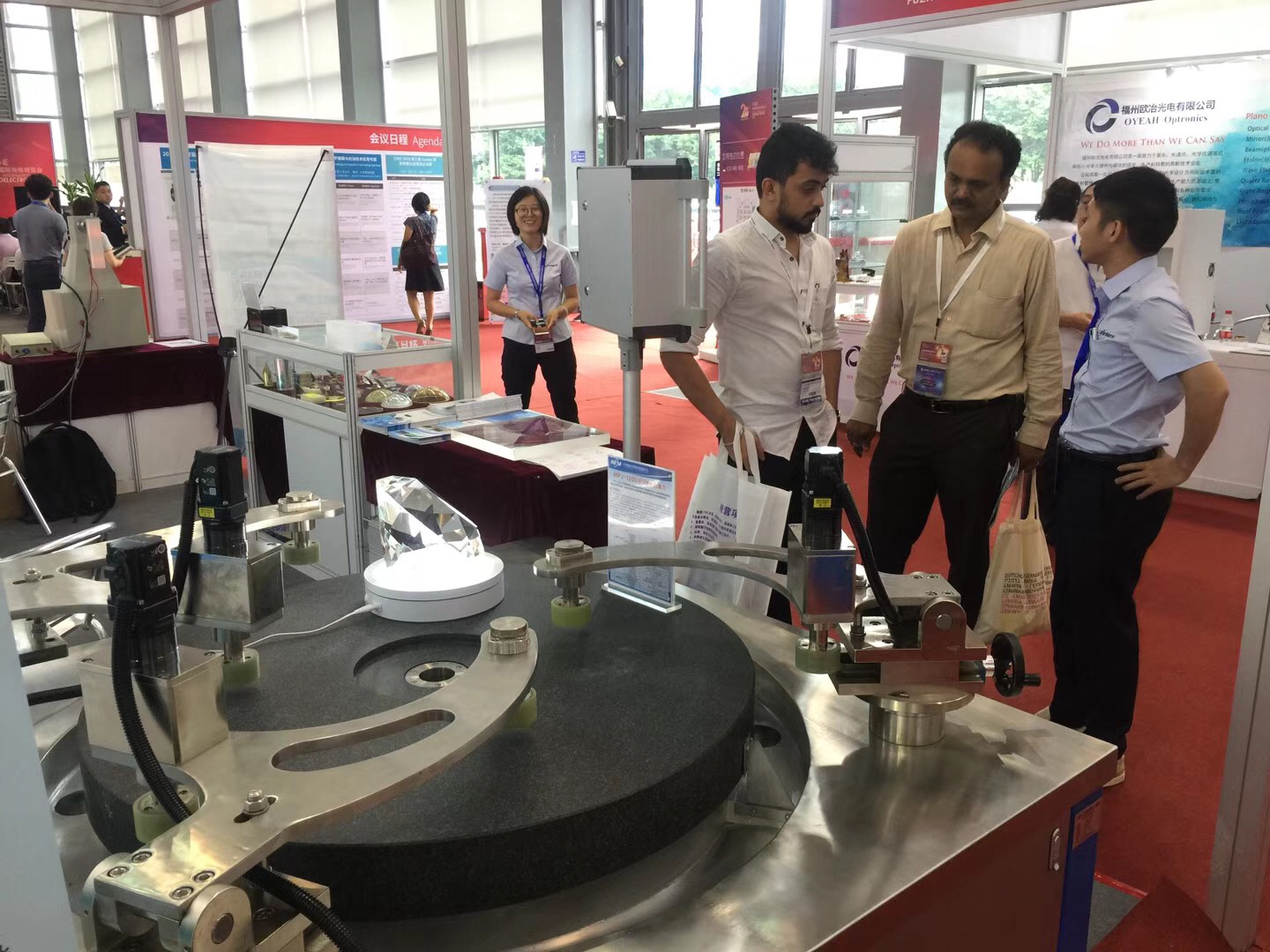 9月5日至9月8日,恒益公司联合精密光学制造与检测中心首次亮相在深圳召开的第二十届中国国际光电博览会,从光学制造设备研制、光学检测设备研制、精密光学元件加工和检测服务等方面全方位展示了上海光机所在精密光学制造领域的优势和特点,并现场展出了环形抛光机、平面干涉仪、精密光学元件等特色产品,展会期间共接待来自国内外企业、研究所和高校等机构1000余人,部分相关产品在现场成交或进行实质性洽谈。 此次参展拓宽了恒益公司市场销售视野,深化了在光学制造领域产品创新和市场精细化策略等方面的认识和理解,为我所未来在光学制造领域的转型变革和战略思维培育奠定了坚实的基础。(恒益公司供稿)