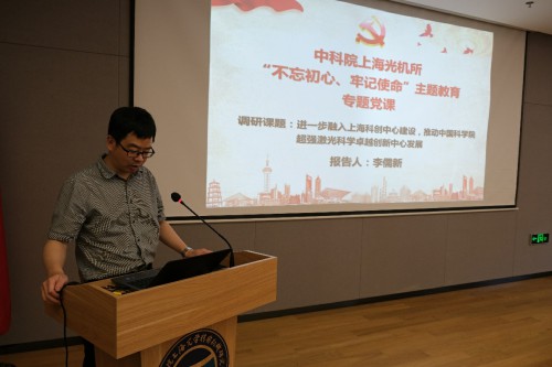会上,所长李儒新院士聚焦“进一步融入上海科创中心建设,推动中国科学院超强激光科学卓越创新中心发展”这一调研课题作了专题党课报告。报告中,李儒新紧密围绕主题教育学习体会,悟上光初心、担上光使命,并就本次主题教育课题调研的成果予以了交流,分析了上海光机所存在差距,提出了下一步的工作思路和措施,为我所推进中科院超强激光科学卓越创新中心建设进一步明确了方向。