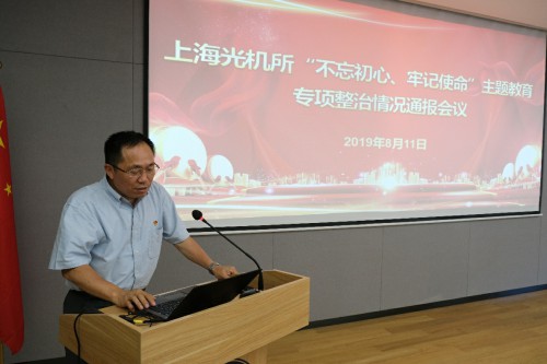 8月11日下午,上海光机所党委在浦东园区羲和激光大楼四层会议室召开了“不忘初心、牢记使命”主题教育第十次集中学习研讨暨主题教育专项整治情况通报会。所领导、党委委员、研究室负责人、机关部门负责人、党支部书记等50余人参加了本次会议。中科院主题教育第十一指导组代表、上海分院组织人事处处长助理过宣帆代表指导组参加了本次会议。会议由党委书记邵建达主持。