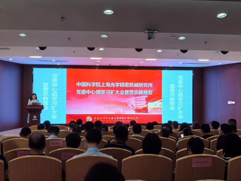 6月18日, 召开中心组学习(扩大)会暨警示教育会,再次学习中央八项规定及其实施细则精神,深化以案说德、以案说纪、以案说法、以案说责,推动全所学习教育走深走实。所领导、党委委员、所务委员、纪委委员、科研大部(实验室)及二级单元负责人、职能与支撑部门负责人、群团组织负责人、支部书记、纪检委员、全体正高人员、科研财务助理等近200人参加会议。会议由党委书记陈卫标主持。