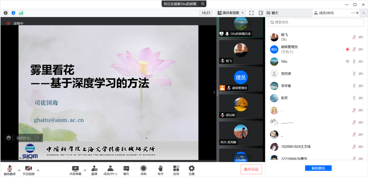 4月25日19:30-21:00,上海光机所在线举办第五期“尚光·奋斗”云讲坛。本次讲坛邀请我所研究员司徒国海作 。会议由上海光机所副所长李学春主持,纪委书记彭芳等650余位科研、管理人员和研究生参加本次论坛。